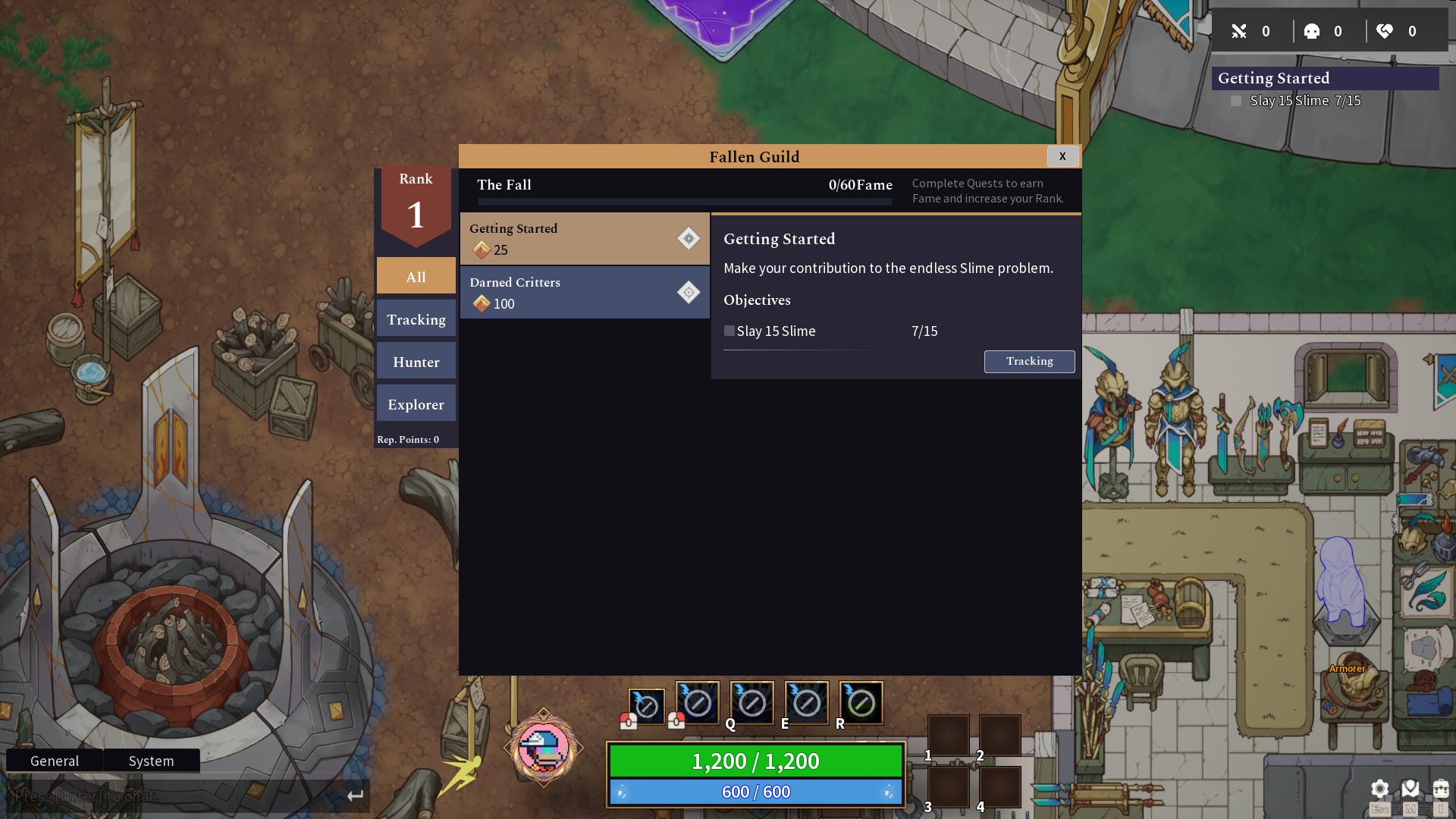 The Fallen Guild is a questing progression system that lets you unlock new items as you play. Completing quests in your Fallen Guild menu awards Fame, a resource that increases your Region Rank, a way to show how much you’ve progressed in different areas of the game.